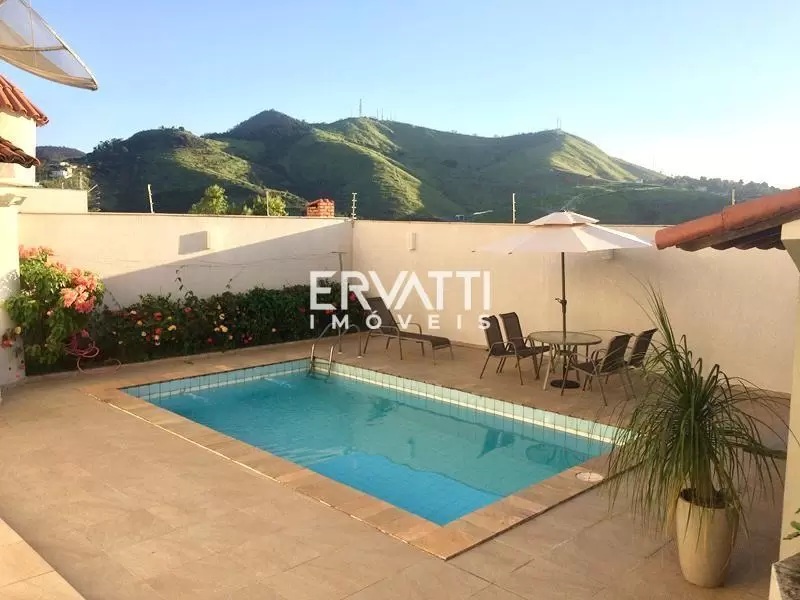 Casa dúplex a venda com uma vista perfeita para o Itabira, sol à tarde na piscina, Área com churrasqueira e uma Ampla área de serviço na parte externa.