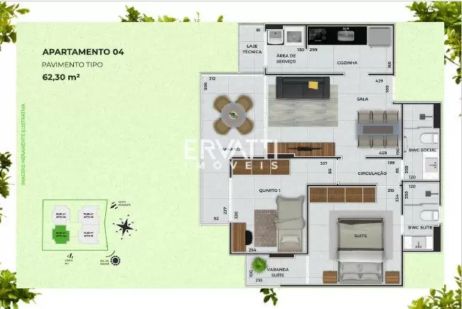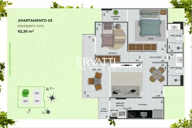 Apartamentos área privativa de 62,30m² com 02 quartos e 01 vaga de garagem à partir de R$ 441.551,25