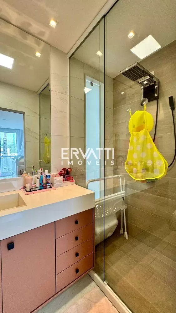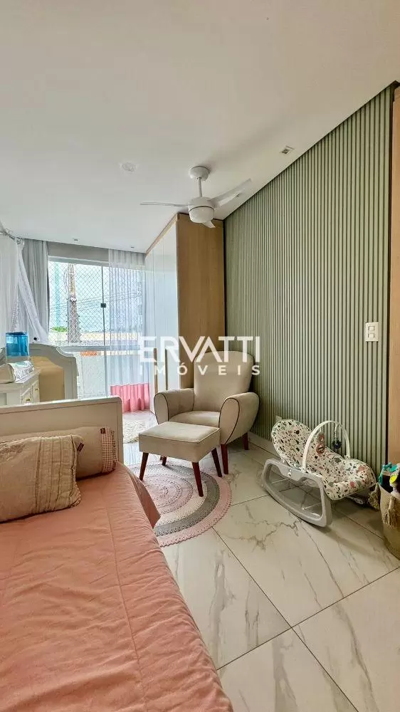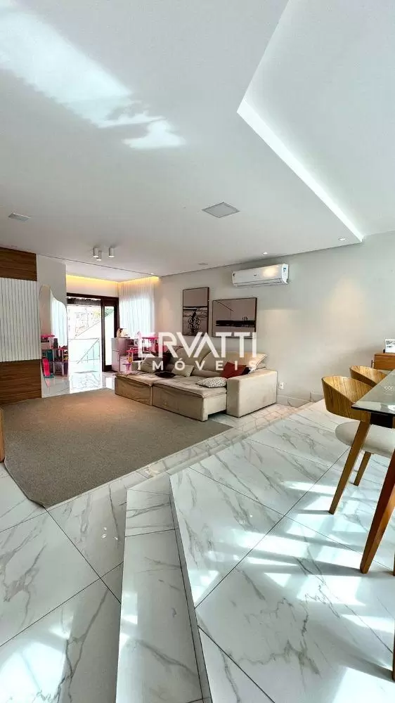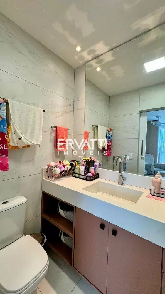 São 3 quartos sendo 2 suítes, uma das suítes com closet, sala dois ambientes, banheiro social, cozinha conceito aberto, despensa, área de serviço, varanda, 02 vagas de garagem, área gourmet com banheiro externo e um escritório que fica no terraço.